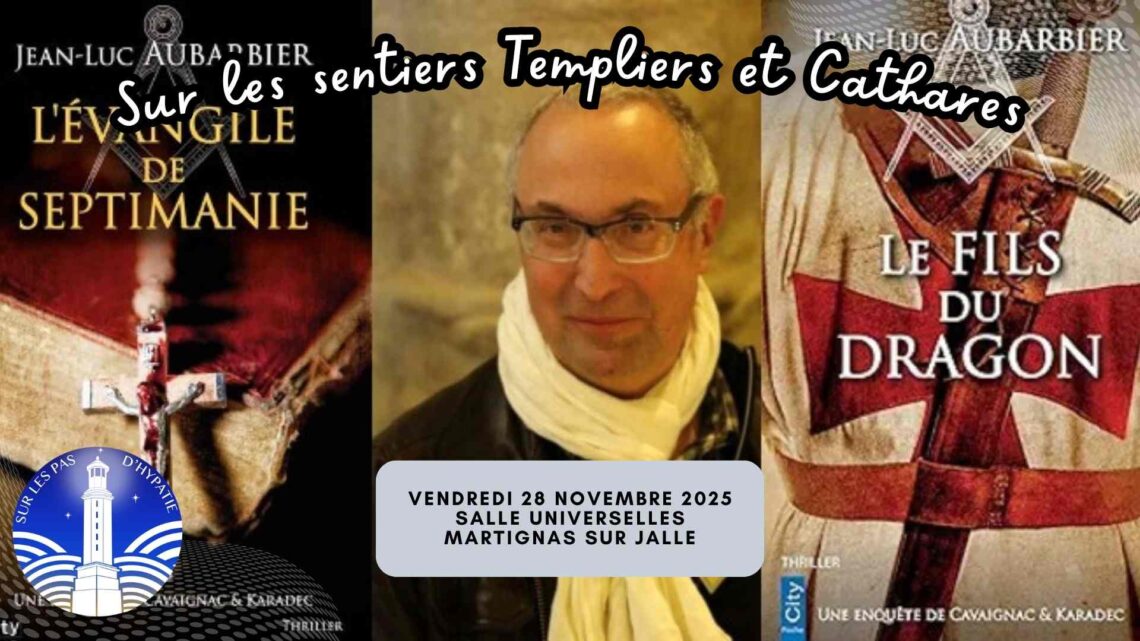 Votre Association Sur Les Pas D’Hypatie vous convie, le Vendredi 28 Novembre 2025, pour 18h30, à une Soirée conférence exceptionnelle, inédite, autour de Jean Luc Aubarbier, auteur de nombreux romans historiques, de notre région.